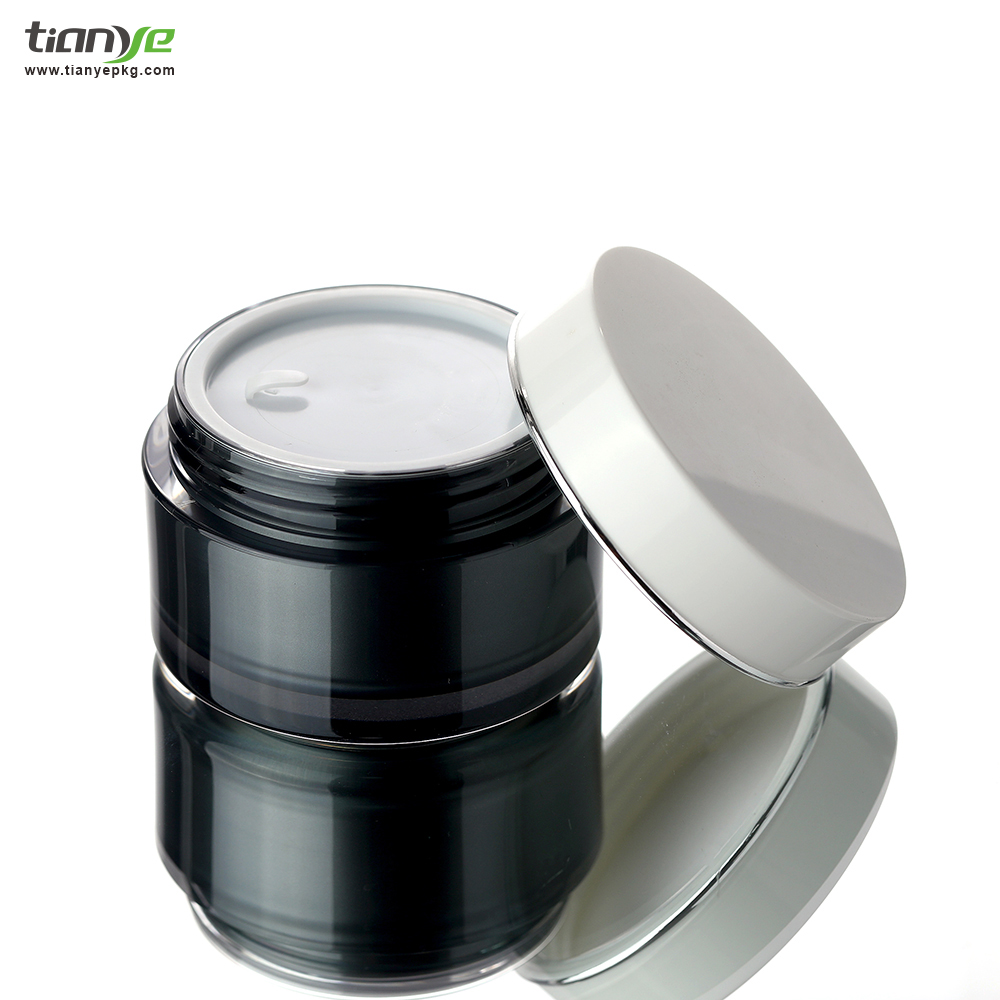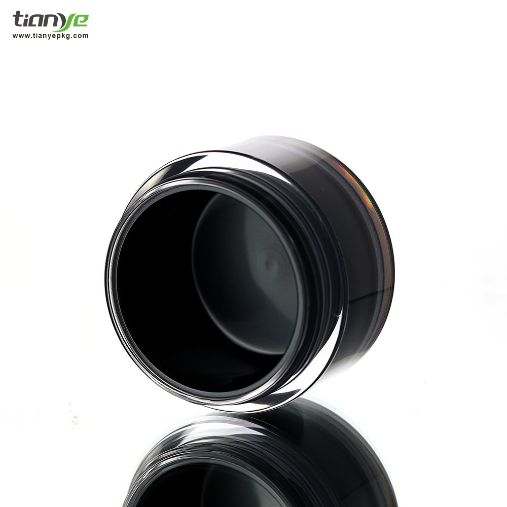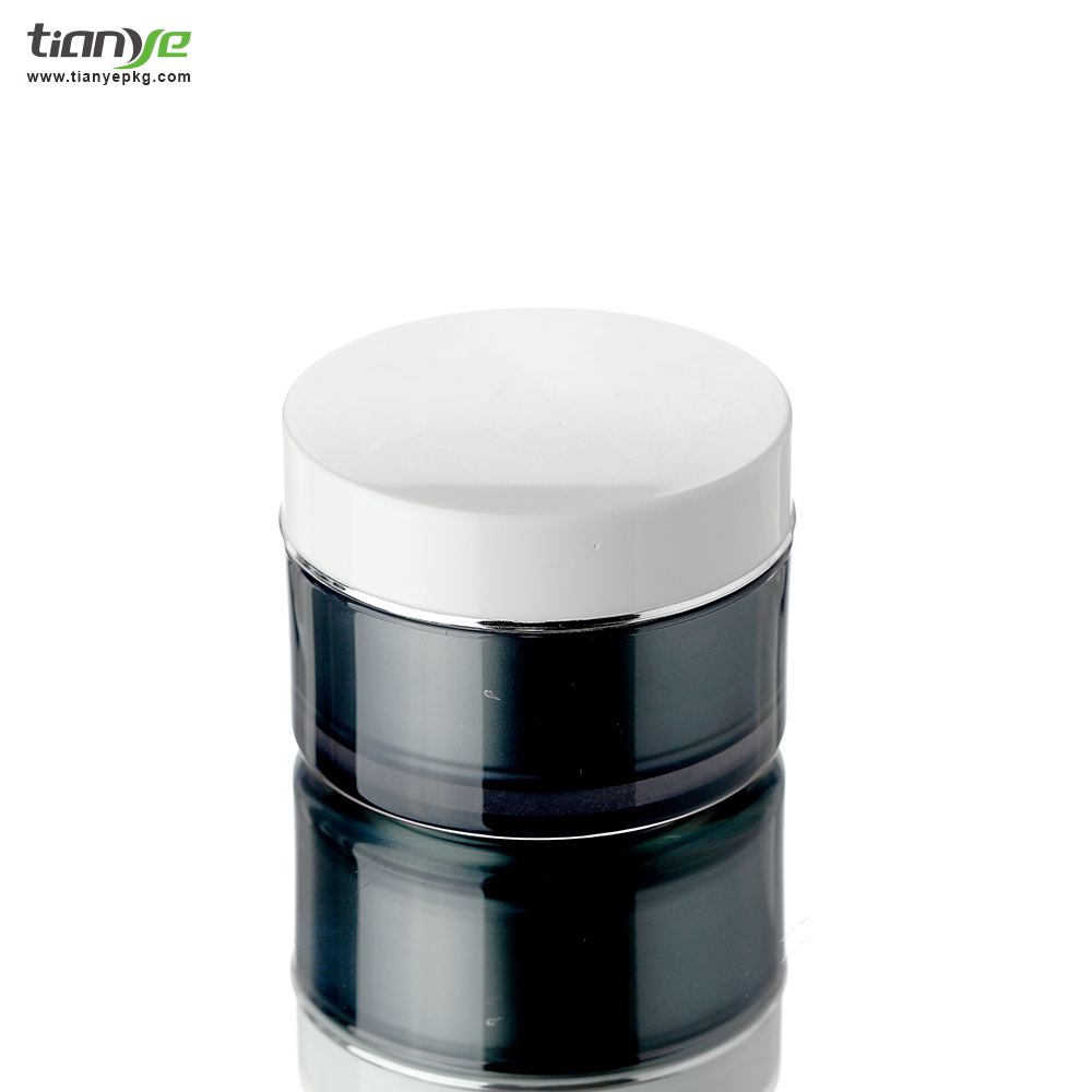 The color of the jar body is transparent and black, and the cap is white with silver hotstamping.